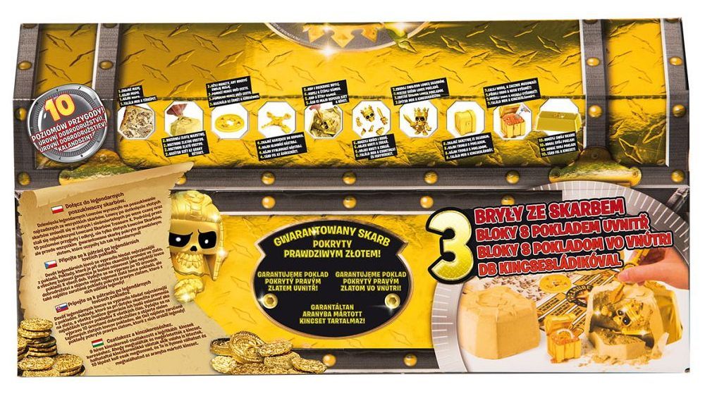 Aranyba Mártott Kincs! A 10 kalandszinten keresztül találkozol 3 legendás kincsvadásszal, melyek közül az egyik aranyból van! Vajon melyik kincsvadásszal találkozol? 9 gyűjthető vadász van a Kincses Készlet Legendái közül!
