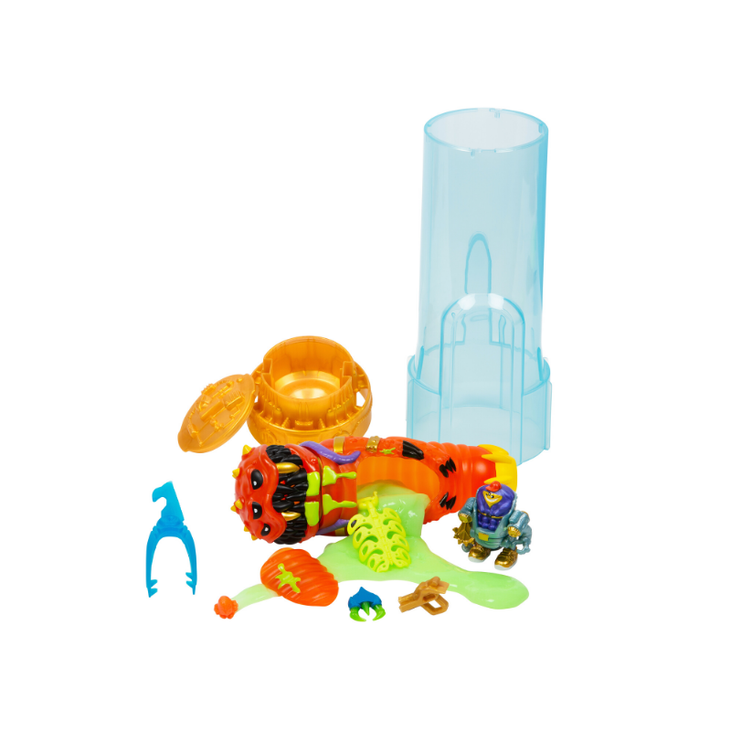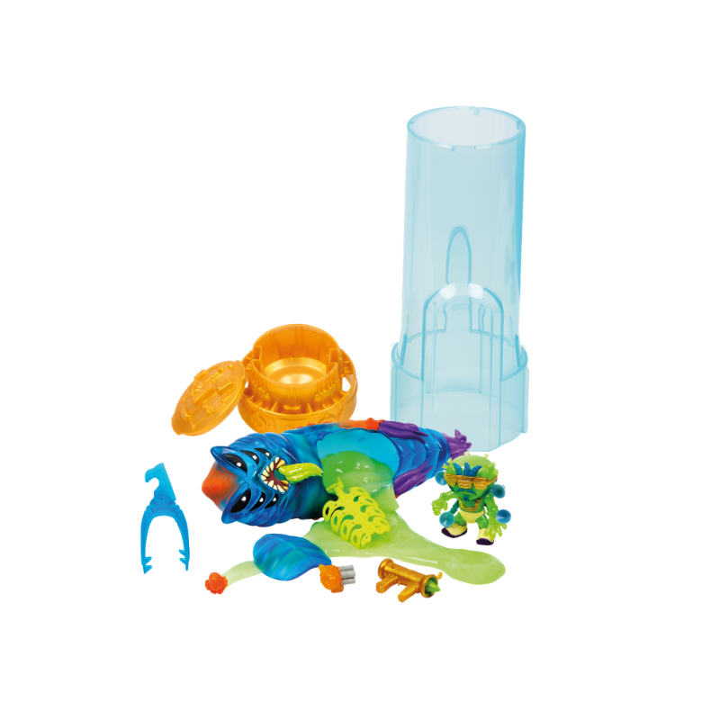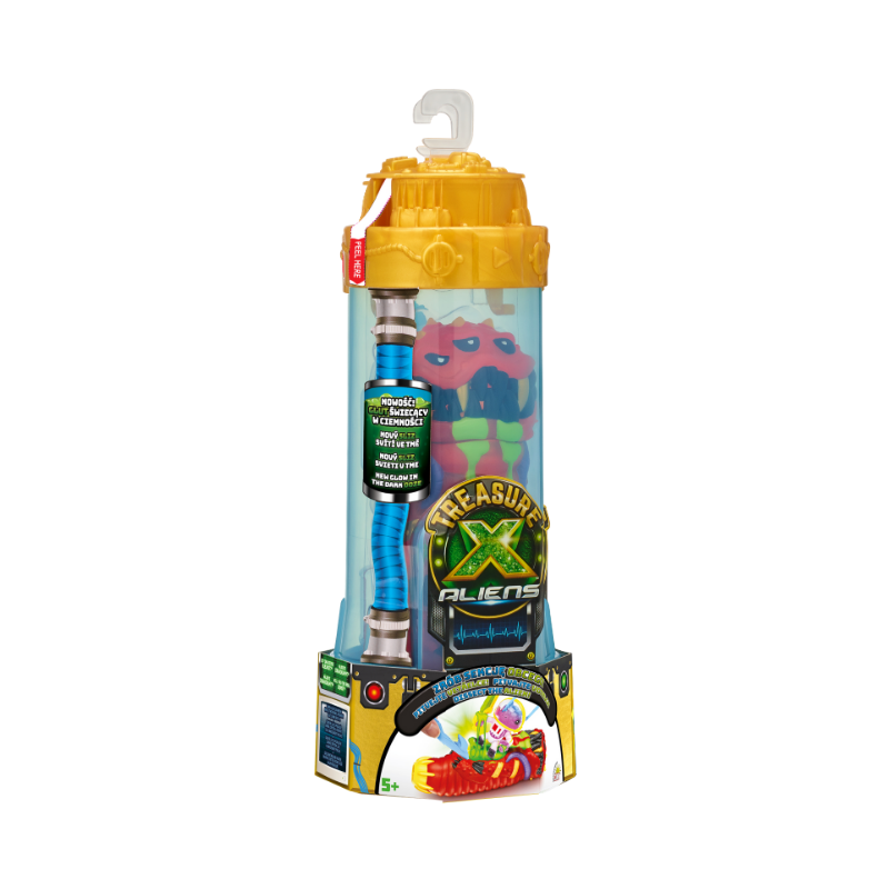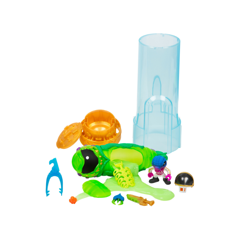 Zestaw zawiera: 1 figurkę Obcego, żebra obcego, pojemnik - komora, 1 figurkę Łowca Skarbów, glut, pojemnik na glut, broń Łowcy, skarb, stworzonko, narzędzie, instrukcję.